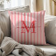 Add a soft, stylish touch to your home with this elegant personalized pillow. Featuring a red and white striped background, this decorative cushion is customized with your monogram initial and name in a fancy script font, creating a timeless and feminine look.