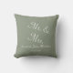 Elegant Sage Green and White Mr.and Mrs Name Date Script Throw Pillow