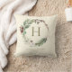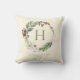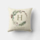 Um travesseiro decorativo moderno e elegante, com cor d'água, floral e botânico de Natal, em um fundo de natas sofisticado para sotaque em sua casa nesta temporada de festas. O texto é uma fonte simples e minimalista do serif. Personalize o monograma e o nome.