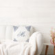 Esta almofada azul e branca elegante com a palavra manuscrita Sr. é parte de produtos combinados para fazer um conjunto de duas almofadas para presente de recém-casados.