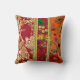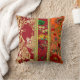 Um design único e espantoso, com cores vivas em vermelho e laranja, revestido com gruas douradas, objetos e variedade de flores exóticas multicoloridas. Um travesseiro de destaque para a decoração da sua casa ou como presente.