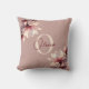 Este travesseiro elegante personalizado apresenta uma letra de monograma e nome com belas flores de magnólia em um fundo rosa.