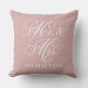 Travesseiro de sotaque quadrado elegante para casais felizes e recém-casados apresenta um roteiro branco, Sr. e Sra. design, com um texto monográfico personalizado que pode ser personalizado com o sobrenome casado. A cor de fundo mauve / rosa cor-de-rosa pode ser personalizada para coordenar com as cores de decoração da casa ou do quarto.
