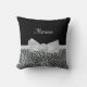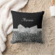 Uma elegante travesseiro decorativo impressão de cinza de prateada com um arco branco sujo embelezado com pérolas bonito e uma fita de roseta no centro. Qualquer garota que ama prata e preto adoraria ter seu nome adicionado a esse design de impressão digital e animal na moda. Imagem impressa plana, não fita real.