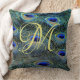 Almofada Elegantes Plumas de Pavão Coloridas com Monograma