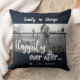 Eles Viveram Felizes para Sempre Almofada de Casamento Céu Noturno. Uma lembrança de casamento. Uma foto dos recém-casados e uma citação "eles viveram felizes para sempre" escrita em um fundo de céu noturno e estrelas, esta elegante almofada faz a lembrança perfeita do casamento para os recém-casados e também para os pais.