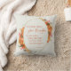Travesseiro com um verso perfeito das Escrituras de Ação de Graças de 1.5.18: "Em cada coisa dá obrigados; para isso é a vontade de Deus no Cristo Jesus que lhe diz respeito," cercado por uma simples coroa de abóbora.