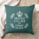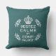 Almofada emblema branco teal Francês Fique Calmo e continue