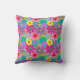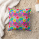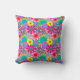 Este travesseiro decorativo tem um design de flores dos anos 70 em várias cores.