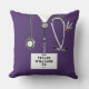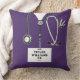 Travesseiro de enfermeira criativa com mato púrpura, estetoscópio e canivete suíço. Editar texto para adicionar nome e credenciais profissionais.