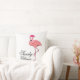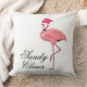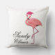 Engraçado Flamingo Papai Noel travesseiro decorativo da novidade do Natal da praia mostra flamingo rosa vestindo um boné do Papai Noel com o nome Sandy Cights. Uma peça de sotaque caseira de Natal com senso de humor. O lado inverso é um rosa consistente. Perfeito para casas de praia, floridianos, sabiás e amantes flamingos em todo lugar.