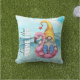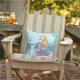 Este engraçado travesseiro ao ar livre apresenta um gnomo sentado em um flamingo rosa flutuando na água na praia. A citação que pode ser personalizada diz "Amar a Vida Gnoma". Desenhada por Susan Coffey.