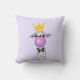 Um travesseiro com uma lama branca soprando uma bolha rosa enquanto mascava chiclete. Vestindo uma coroa dourada e uma gravata arco preta. Fundo roxo claro.