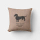 Design de burlap para o Dachshund/Doxie que governa a casa. Este é o lugar dele no sofá! Observe que a burlap é um efeito falso impresso (não uma burlap real). Este travesseiro macio e liso está disponível em algodão ou tecido de poliéster ou com um tratamento exterior durável adequado para o pátio/banco de porcos. O texto pode ser facilmente personalizado.