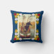 Um coxim com uma cena tradicional pintada do canal do narrowboat, com outono coloriu as folhas no fundo e nas árvores desencapadas. O narrowboat está girando ao redor no canal, uma manobra chamada enrolamento. A pintura tem uma beira de canto de rosas tradicionais do canal de uma foto original.
