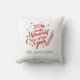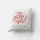 O design sazonal da almofada apresenta um moderno texto vermelho "É a época mais maravilhosa do ano" com texto personalizado verde que pode ser personalizado com o seu apelido. Verdura, floco de neve e estrela de destaque no design. Cor de fundo branca.