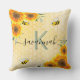 Um ouro de fundo com um padrão de colmeia de abelhas e um sorriso feliz de abelhas. Decorado com girassóis amarelos e laranja, flores e verde. Personalize e seu nome e letra monográfica. O nome é escrito com um moderno e extenso estilo escrito à mão, com traços. Para manter as hastes, exclua apenas o nome da amostra, deixe os espaços ou emoji na frente e depois do nome. Letras pretas e verdes.