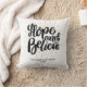 Um belo travesseiro com as palavras Esperança e Acredite na frente com seu texto personalizado. Adicione um nome de família, data etc. A parte de trás apresenta a sua fotografia personalizada. Faz um maravilhoso feriado, aniversário ou presente de mãe/Dia de os pais.