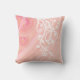 Um maravilhoso design travesseiro decorativo com um filigre branco e design floral sobre um fundo fractal espiral cor-de-rosa pastel e pêssego em ambos os lados do travesseiro. Deixe-o como está ou clique em Personalizar! para adicionar texto como um nome de família ou aspas Na coluna à direita em Escolha suas opções, você também pode selecionar o Travesseiro lombar com este design.