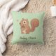 Um travesseiro decorativo bonito com uma ilustração de um pequeno esquilo segurando uma bolota. Personalize com o nome de criança para uma bela peça decorativa para o quarto de bebê ou de crianças! A cor de fundo pode ser alterada no modo de personalização.