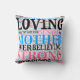 Travesseiro de Nuvem de Palavras-Mãe, Estilo 2 é uma design de arte gráfica com palavras de texto decorativas descrevendo a mãe. Tudo o que ela é para você descreveu em várias fontes decorativas e cores. As cores neste travesseiro são preto, rosa e azul sobre um fundo branco sólido. Palavras como: amável, gentil; forte, crente sempre; gentil, gentil; honre sua mãe, valores e muito mais! Isto faz um belo presente para a mãe a qualquer momento do ano.