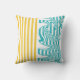 Almofada Estirpes e espirais em Turquesa e Amarelo