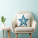 Design moderno com estrelas azuis e brancas "brilhantes" sobre fundo branco. Travesseiro decorativo com um design personalizável para você personalizar com seu próprio texto, imagens e ideias. Esta é uma imagem de arte digital criada usando fotografias originais e técnicas digitais e impressa em tecido, ela não brilha ou contém faíscas reais.
