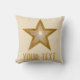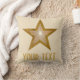 Design moderno com ouro "brilhante" e estrela branca num fundo creme escuro. Travesseiro decorativo com um design personalizável para você personalizar com seu próprio texto, imagens e ideias. Esta é uma imagem de arte digital criada usando fotografias originais e técnicas digitais e impressa em tecido, ela não brilha ou contém faíscas reais.