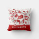 O travesseiro decorativo de futebol desta menina legal apresenta uma "explosão" de bolas de futebol vermelhas e brancas em tamanhos variados e cinzas e formas de estrelas vermelhas, sobre as quais você pode personalizar seu número de camisa - a estrela vermelha tem um pequeno padrão de bolinhas brancas - personalize o nome do atleta em uma faixa vermelha na borda inferior do travesseiro - katz_d_zynes