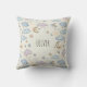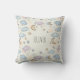 Este travesseiro decorativo personalizado apresenta uma ilustração esquemática de estrelas lúdicas, luas em crescente e nuvens fluffy com aquarela pastel macio.