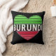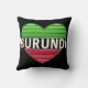 Travesseiro decorativo Burundi. Um design de coração feito com cores gradiente da bandeira Burundi.
