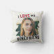 Excelente presente para o seu namorado! Travesseiro de fotos personalizado dizendo que EU AMO MEU NAMORADA em uma foto de tipografia sorrateira esportiva em um recorte de máscara legal angustiado. Personalização simples e fácil!
