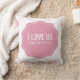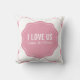 Um travesseiro fofo com corações e crias cor-de-rosa, junto com as palavras, "Eu amo-nos". Sinta-se livre para mudar o sentimento para se adequar à ocasião. Personalize o travesseiro com o seu nome e o do seu parceiro. Isso faria um excelente de aniversário de casamento ou um presente de Dia de os namorados.