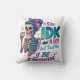 Design vibrante e colorido com um esqueleto feminino tomando café. O texto colorido diz: "Eu digo muito IDK, mas confie em mim, eu sei". Esse design está disponível em uma grande variedade de produtos.