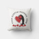 O design do produto apresenta um pinguim segurando um grande coração vermelho. Essa ilustração encantadora de animal torna uma almofada decorativa engraçada e única com texto personalizado para o Dia dos Namorados, aniversário de casamento e mais.