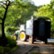 A chuva está prevista e o agricultor está trabalhando tarde da noite para conseguir a grama para a silagem.