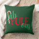 Design verde florestal com cana-de-açúcar listrada soletrando "Fab-Yule-ous!" de forma festiva neste travesseiro decorativo de férias.
