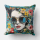 Adicione um toque ousado à sua decoração com este vibrante travesseiro com um rosto de mulher do estilo pop vestindo óculos de sol de aviador enfeitados com flores e borboletas. O verso apresenta um padrão delicado de pequenas flores brancas, nódulos-esqueço e borboletas, criando um equilíbrio perfeito de cinzas e caprichos. Ideal para adicionar um pop de cor e talento artístico a qualquer sala.