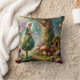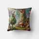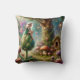 Esta almofada de lançamento tem uma ilustração de aquarela de uma fada sentada numa alcachofra, ao lado de uma grande árvore, vila caprichosa, flores e borboletas.