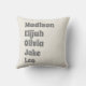 Travesseiro decorativo retro creme de cinco nomes da família