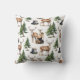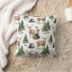 Um travesseiro decorativo da estação de inverno que apresenta uma família de renas pintada a aquarelas numa floresta florestal, sobre um fundo branco natural.