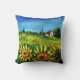 Pintura original de Bulgaria Lumini (c). Beleza colorida, vibrante e expressiva do campo italiano e campos em laranja amarelo brilhante, verde, castanho, azul, bela flora de Verão, prados, flores, ciprestes e oliveiras, fazenda rústica antiga sob o céu azul.Pintura acrílica em canvas.