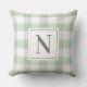 O travesseiro decorativo neutro do estilo da fazenda apresenta um padrão clássico, moderno e tradicional de xadrez de verificação de gingham verde e branco com o monograma da família personalizado design de letra inicial que pode ser personalizado em ambos os lados do travesseiro. Nota, o texto da cinza de carvão e a cor do plano de fundo do sábio podem ser personalizados para coordenar com a decoração inicial.