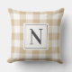 O travesseiro decorativo neutro do estilo da fazenda apresenta um padrão clássico, moderno e tradicional, de cor kraft tan e gingham branco, de xadrez de verificação com monograma da família personalizada, design de letra inicial, que pode ser personalizado em ambos os lados do travesseiro. Nota, a cinza de carvão / texto preto suave e cor de fundo castanho pode ser personalizada para coordenar com a decoração doméstica.