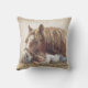Travesseiro decorativo de decorador com uma pintura rústica e fazenda de campo de um cavalo e criança dormindo pacificamente em uma cama de feno.