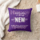 Este é um TRAVESSEIRO DECORATIVO em um esquema de cor roxo, mauve e branco. A mensagem inspiracional GOD FAZ TODAS AS COISAS NOVAS é combinada com FELIZ ANO NOVO em tipografia branca contra um rico fundo roxo. O FELIZ ANO NOVO de saudação é escrito em um script de luz. O verso de script de espaço reservado é personalizável, de modo que você pode mudar para seu próprio verso de Bíblia favorito, seu nome ou outro texto. Disponível em outras cores na Coleção NOVO ANO, ou você pode combinar a decoração inicial clicando no botão Personalizar Mais.