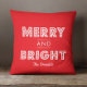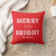 Design de travesseiro brilhante de Natal vermelho e branco com tipografia ousada que diz "Feliz e Brilho" e pode ser personalizado com seu nome de família. Projetado para coordenar com a coleção de feriados "Feliz e Brilho Negrito" por Impressões Origami.