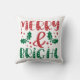 Feliz e Vermelho Brilhante e Travesseiro decorativo de Natal Holly Verde.