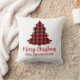Simples padrões de verificação de búfalos verdes e vermelhos travesseiros decorativos com um padrão de verificação de búfalos, típica tipografia simples, e uma Árvore de Natal, com vermelho e preto, uma xadrez de gingham, uma fazenda, estilo clássico, estilo country.