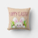 Este coelho branco fofo está a espreitar do buraco do coelho para lhe desejar uma Felz pascoa. No verso do travesseiro há uma vista de cheio, repetindo o padrão do coelho. A cor de fundo, um bege suave, pode ser personalizada.